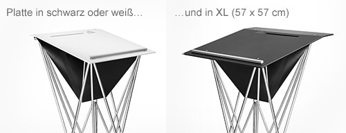 Platten: 49 x 49 oder 57 x 57 cm, weiß oder schwarz