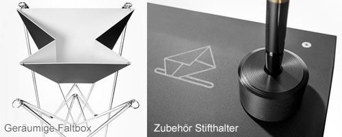 Optional sind ein passender Stifthalter, Pultlampe und Transporttaschen im Shop erhältlich.