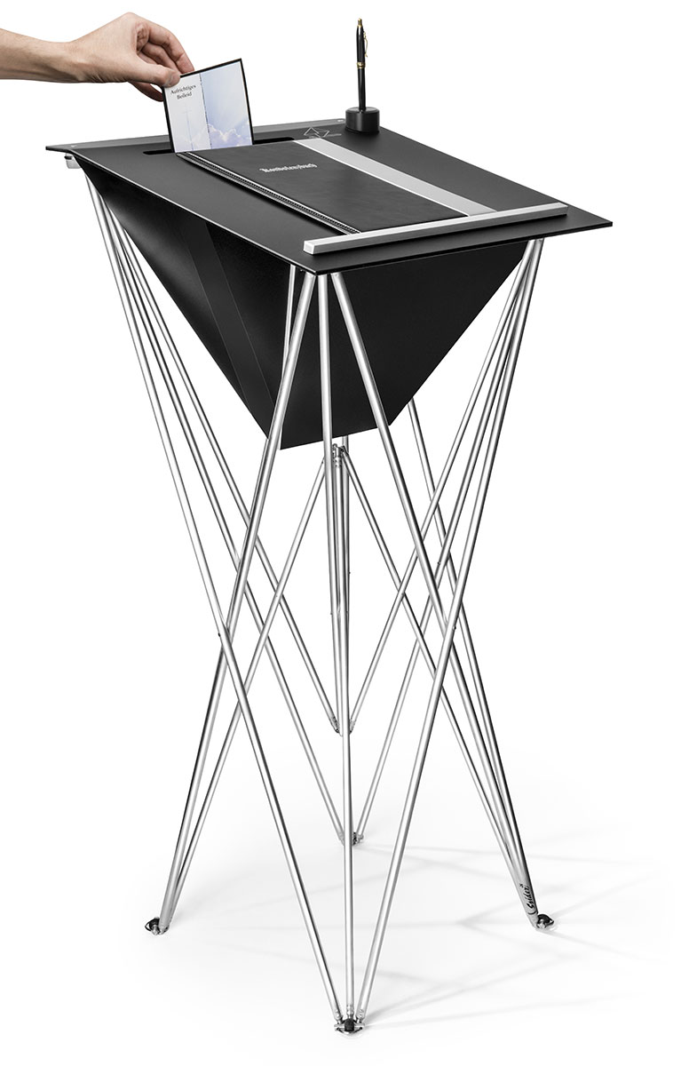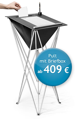 Schreibpult und Briefkasten in einem. Ideal für Wahlkarten, Bewertungen, Preisausschreiben oder Kondolenzkarten geeignet.